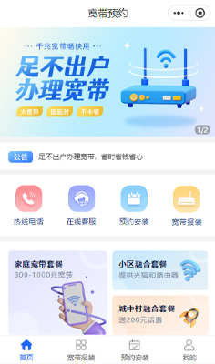 【宽带预约小程序模板】宽带服务预约微信小程序模板