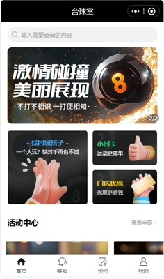 桌球室预约微信小程序模板